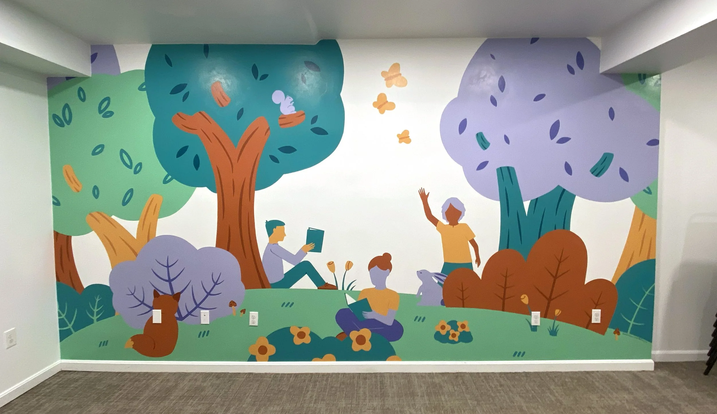 Doc Wayne is revolutionizing mental health care for youth by using sport based therapies. They are giving an amazing advantage in life by providing support in an area where kids often don’t see it. They needed a mural in their office that would embody their mission. I designed this mural to show both the journey and the effects of positive mental health.